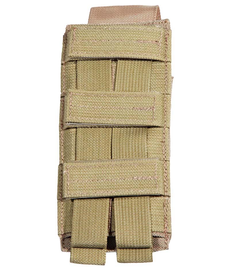 Single magazine pouch for M4. This pouch can be fitted to any MOLLE support in a vertical position or in a horizontal position to any combat or rescue belt. Made from Cordura 1000 with adjustable flap.