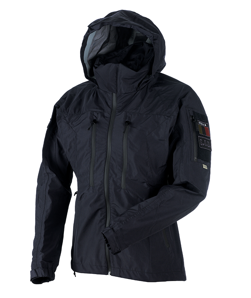 Product name: Tuscania waterproof jacket. Product code: T.W.J. Product type: Level 6 waterproof jacket. Construction Material: o Trilaminate ripstop fabric with 15000 mm water column, polyurethane membrane and protective mesh; o waterproof Ykk zip-fasteners; o heat-sealed taping for the seams. Features : o two chest Ykk-zippered pockets with elastic cord inside to adjust the hood once worn; o two cargo pockets on the hips with Ykk zippers and internal elastic cord for waist ad...